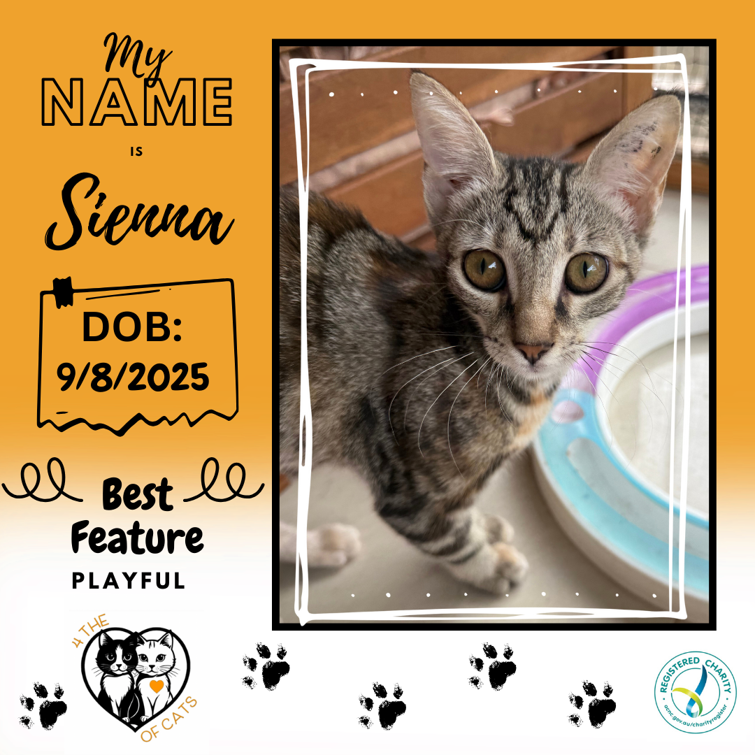 But don’t let her playful antics fool you. When playtime winds down, Sienna transforms into the sweetest cuddle companion, melting into your hand for pats and purring up a storm.