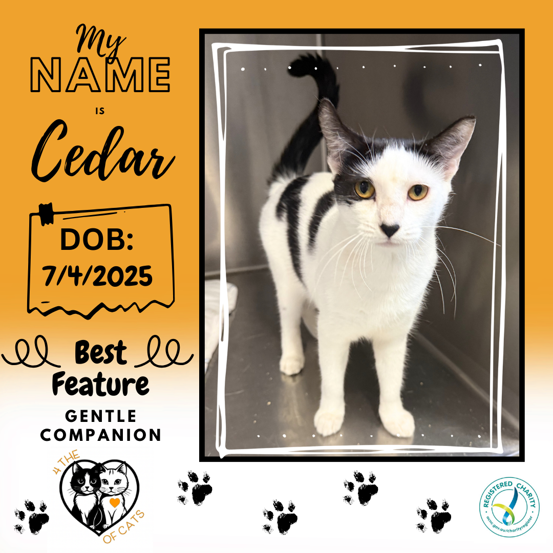 But Cedar is more than a pretty face. She’s a gentle soul with a curious spirit, quietly exploring the world around her with soft paws and an open heart. Patient, calm, and wonderfully easy-going, she gets along beautifully with other cats, making her a perfect addition to a home that already has a feline friend, or a wonderful first companion for one lucky household.